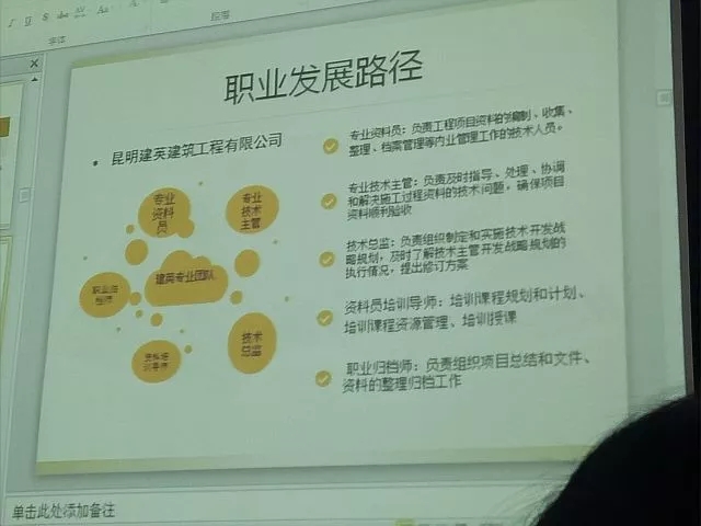 2018年4月23日,工程学院举行就业专题讲座,邀请到昆明建英建筑有限责任公司到我校进行资料班宣讲会,16级无课班级全体同学及感兴趣的同学参加了此次讲座。