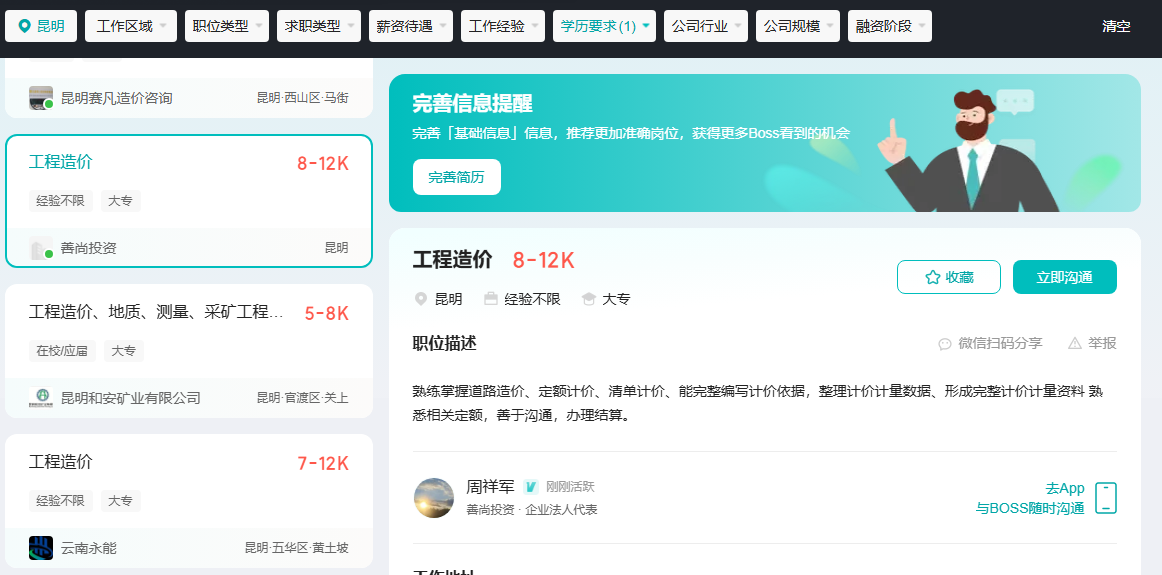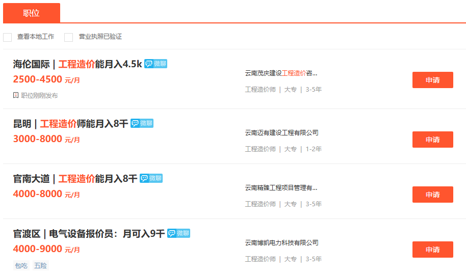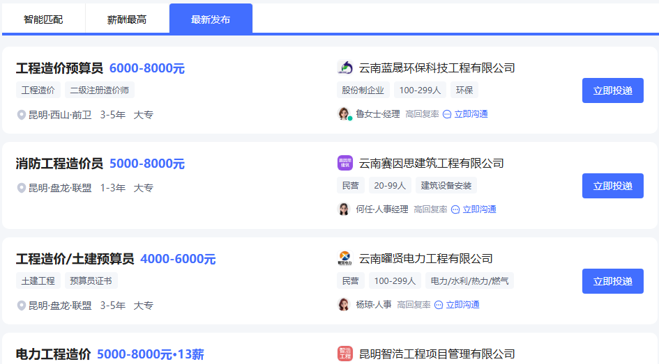3.智联招聘 网址:「工程造价招聘 2026年昆明工程造价招聘信息」-智联招聘