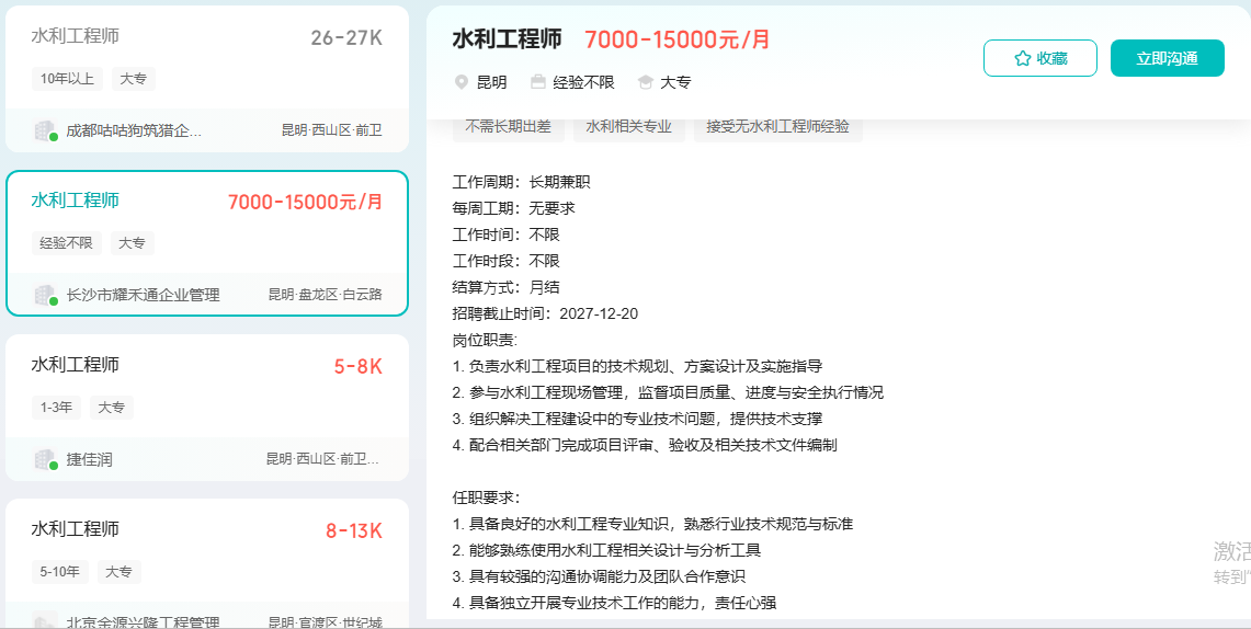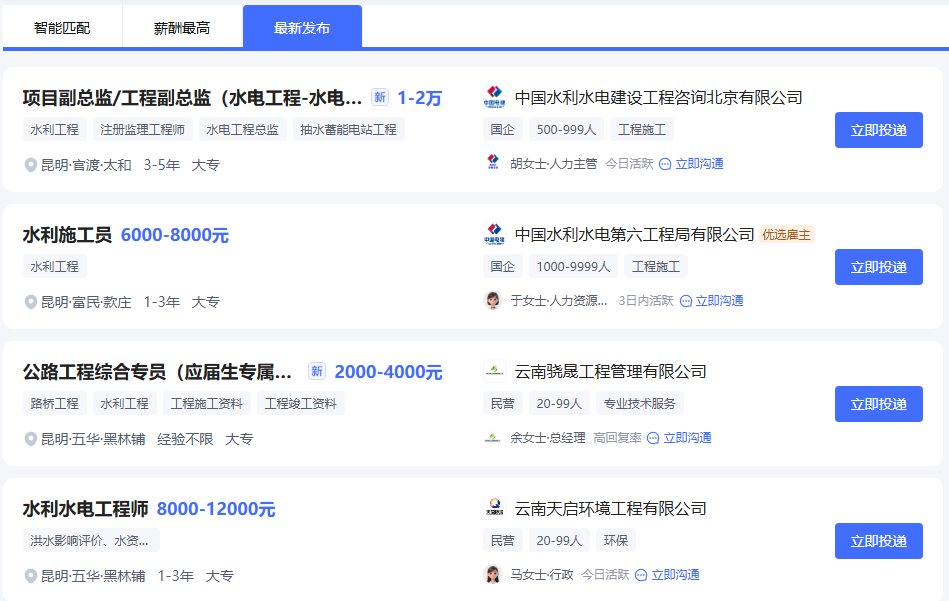 1.智联招聘 网址:「水利工程招聘 2026年昆明水利工程招聘信息」-智联招聘