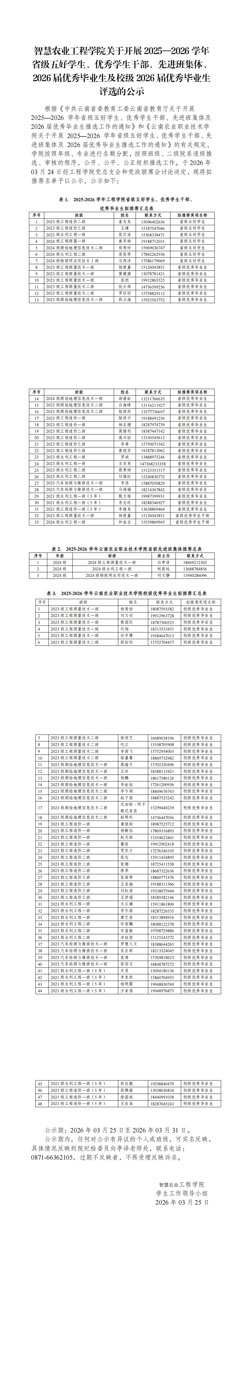 附件下载:/upload/images/SITE_gcxy_site/202604/09/智慧农业工程学院 2025-2026学年省级五好学生、优秀学生干部、先进班集体、及大中专优秀毕业生公示.pdf