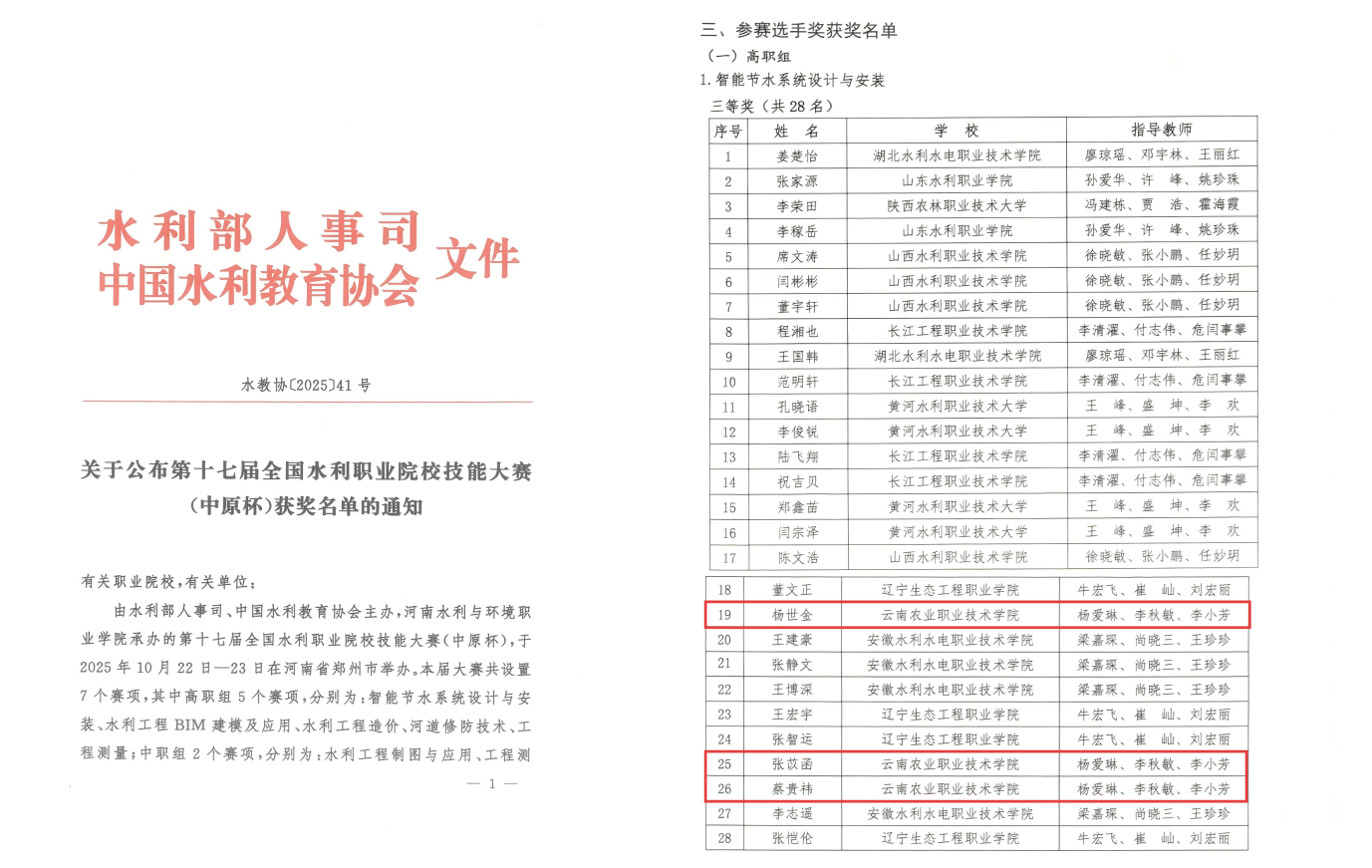 这份成绩充分彰显了我校在水利专业人才培养上的显著成效,也展现了学子们勤学苦练、精益求精的专业素养与实践风采。未来,学校将以此次大赛为契机,认真总结经验,充分发挥技能大赛对职业教育教学改革和专业建设的引领作用。我们将牢牢把握立德树人根本任务,持续深化教育教学改革,不断提升人才培养质量,构建德技并修的育人模式;精准对接水利高质量发展对技术技能人才的需求,主动融入行业、服务行业,深入推进职普融通、产教融合、科教融汇,着力培养更多适应时代要求、掌握高超技能的高素质水利技术技能人才,为水利事业发展注入源源不断的青春力量。