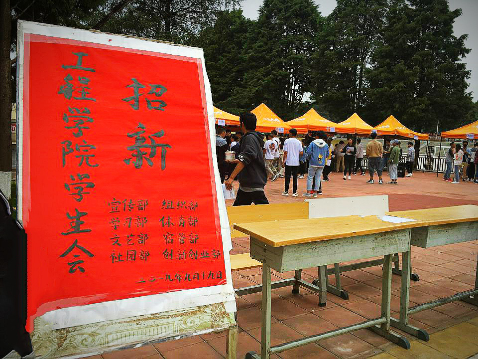 通知中心2019年9月19日,工程学院学生会开始招新了。招新工作由我院学生会各部门负责人及优秀代表参加,来自19级的新生们在这齐聚一堂,报名的同学个个激情昂扬,在这活跃的氛围中,招新工作有条不絮的展开。